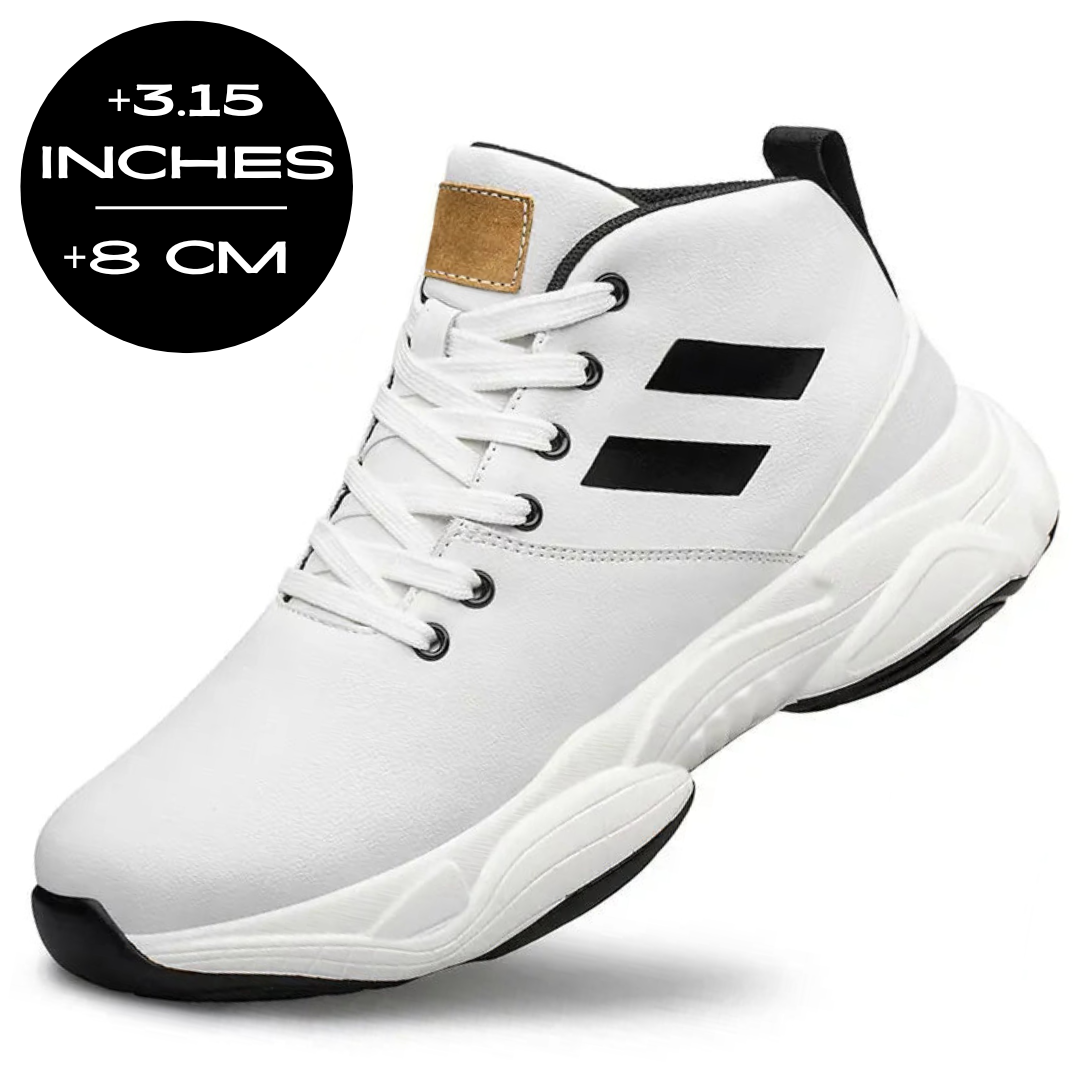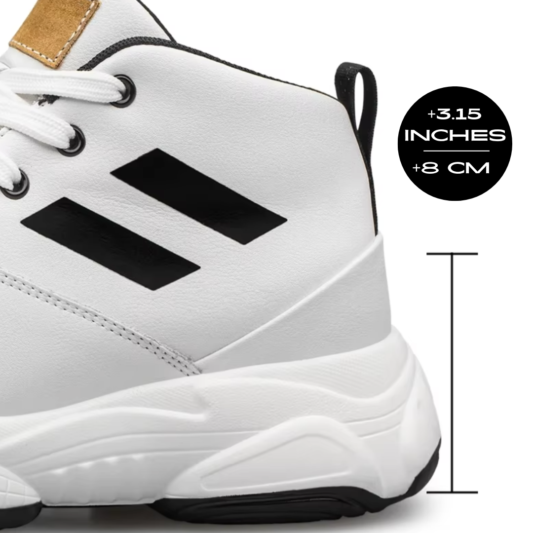 Own your presence. With every step, these sneakers discreetly elevate your height by 3.15 inches / 8 cm, empowering you to stand taller and feel unstoppable.